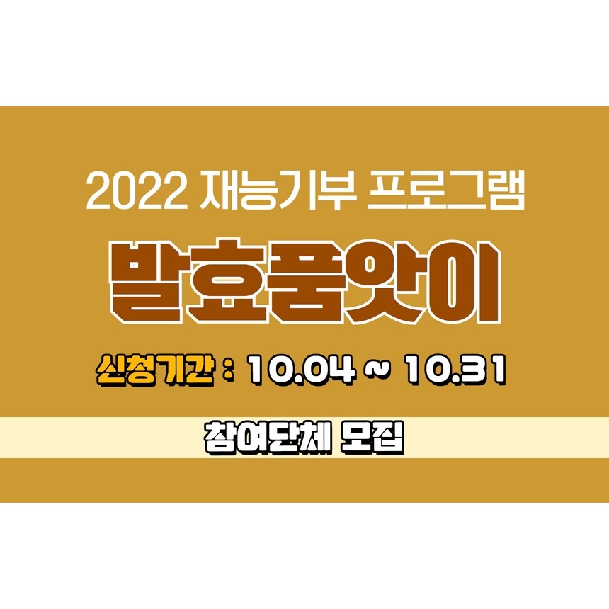 ○ 신청기간 : 2022. 10. 4.(화) ~ 10. 31.(월)/재료 및 예산 소진시 조기 마감