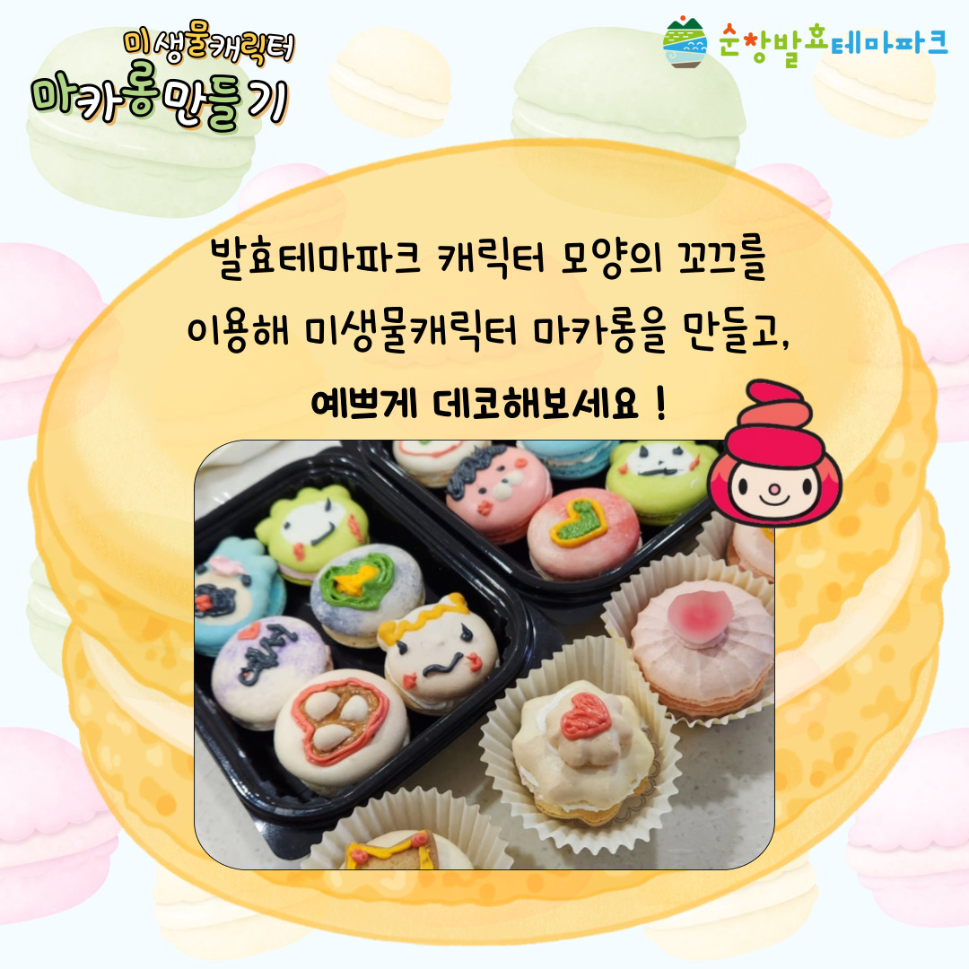 2025 발효쿠킹클래스 (마카롱 만들기) 행사기간2025년 8월~ 행사시간매주 일요일 접수기간체험 주 수요일 예약 이용대상전연령 참 가 비15,000원 네이버 예약신청 바로가기 본문 이전글2025 발효쿠킹클래스 (장추왕 과자집만들기) 25.10.02 다음글2025 발효미생물프로젝트 (천연아로마 촉촉립밤만들기) 25.09.30 목록 댓글 0 댓글목록 등록된 댓글이 없습니다.