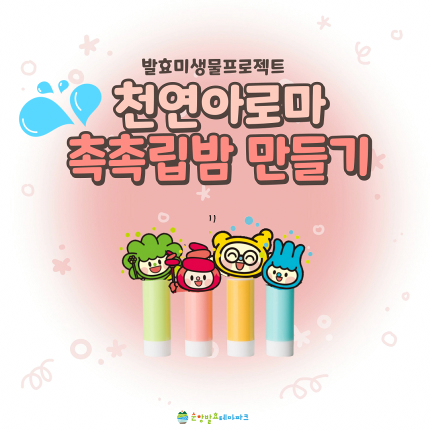 2025 발효미생물프로젝트 (천연아로마 촉촉립밤만들기) 행사기간2025년 10월 행사시간매주 일요일 접수기간체험 주 수요일 예약 이용대상전연령 참 가 비15,000원 네이버 예약신청 바로가기 본문 이전글2025 발효쿠킹클래스 (마카롱 만들기) 25.09.30 다음글2025 발효미생물프로젝트 (버물리밤만들기) 25.09.30 목록 댓글 0 댓글목록 등록된 댓글이 없습니다.