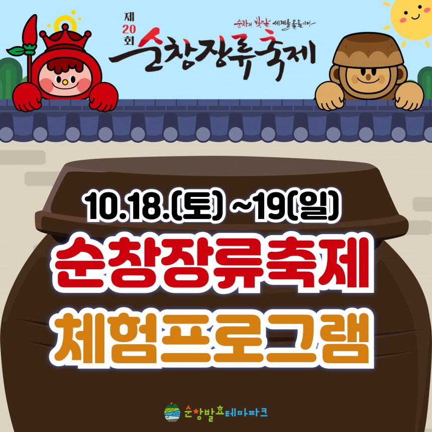 2025 순창장류축제 체험프로그램 행사기간2025년 10월 18일~19일 행사시간홈페이지 참조 접수기간10월 15일 10:00 이용대상전연령 참 가 비홈페이지 참조 네이버 예약신청 바로가기 본문 다음글2025 발효미생물프로젝트 (고보습 아토피폼 바디로션 만들기) 25.10.02 목록 댓글 0 댓글목록 등록된 댓글이 없습니다.